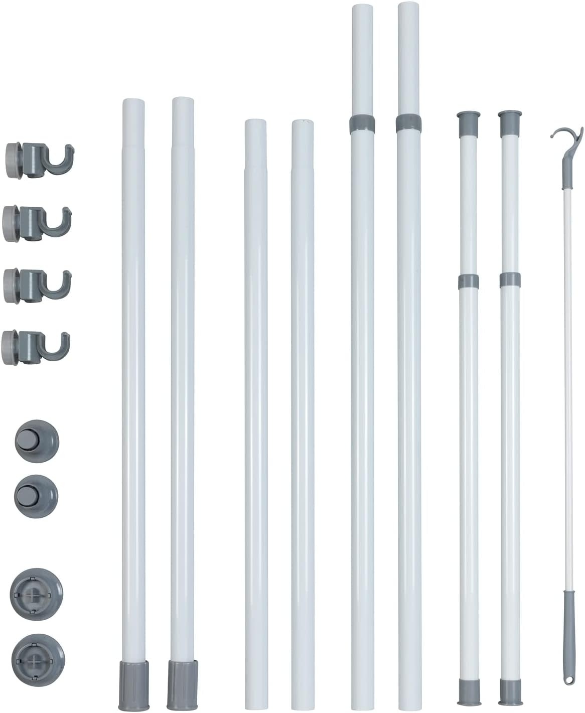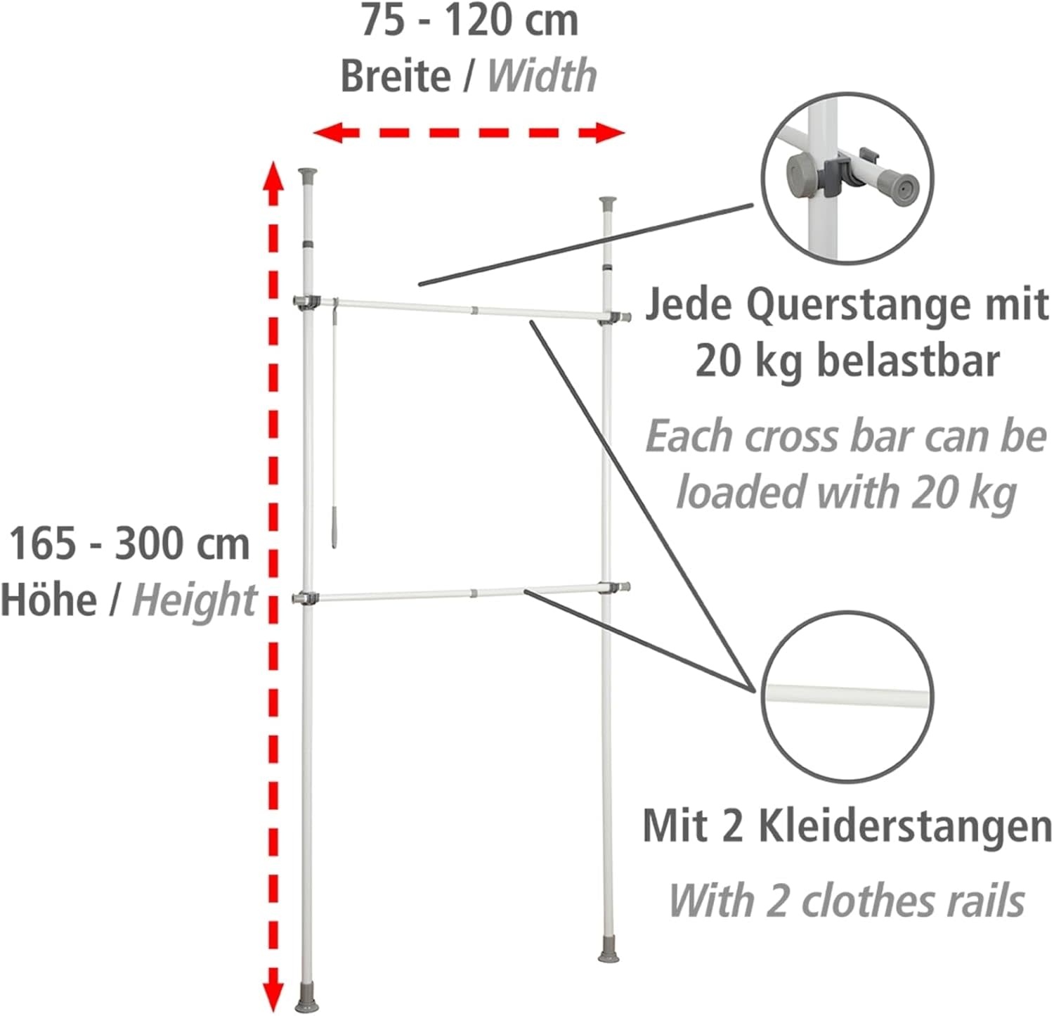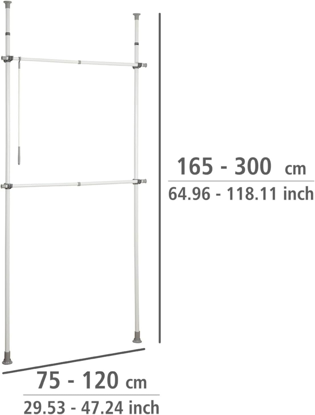 Telescopisch en verstelbaar: Verticale stangen uit te schuiven van 165–300 cm, horizontale stangen instelbaar van 75–120 cm