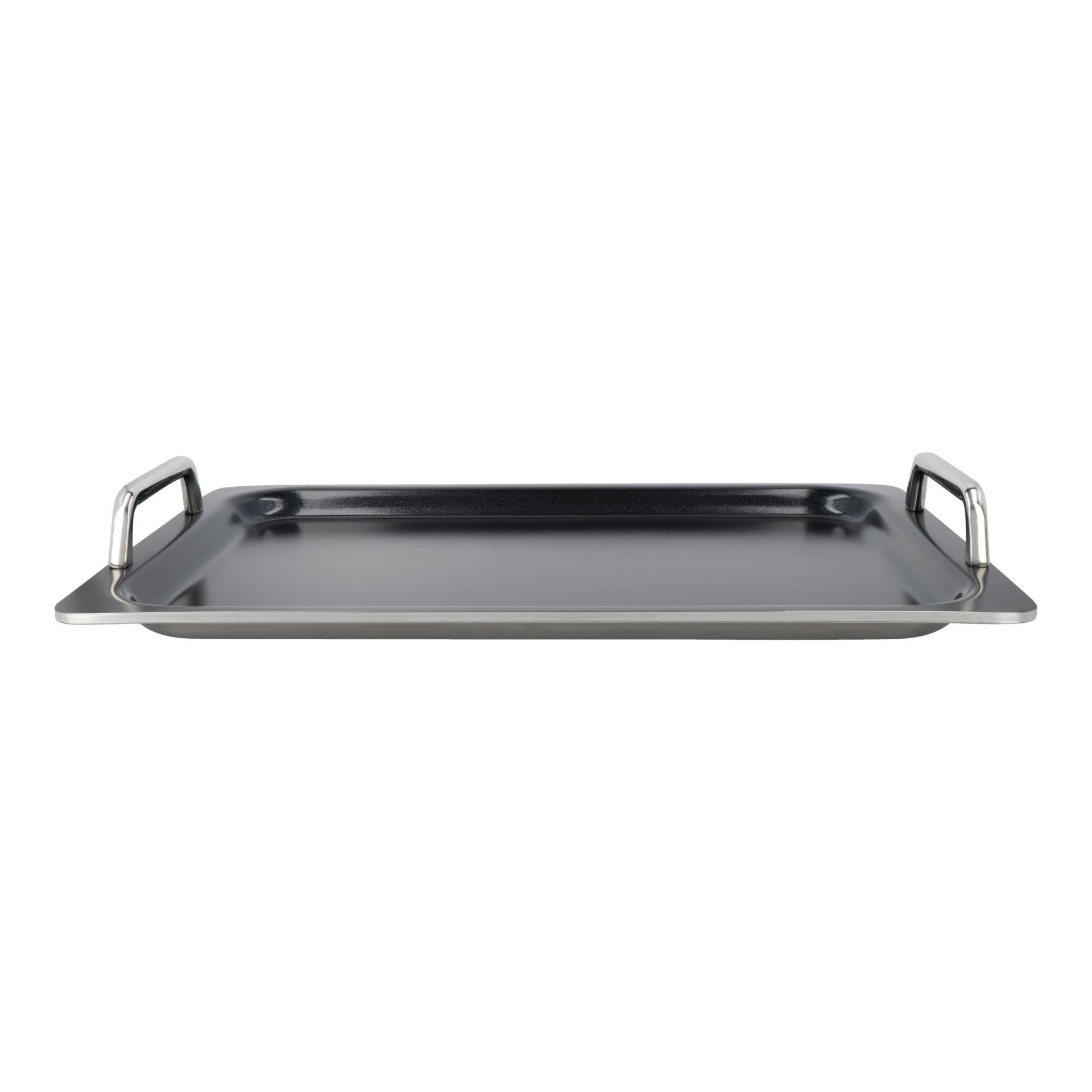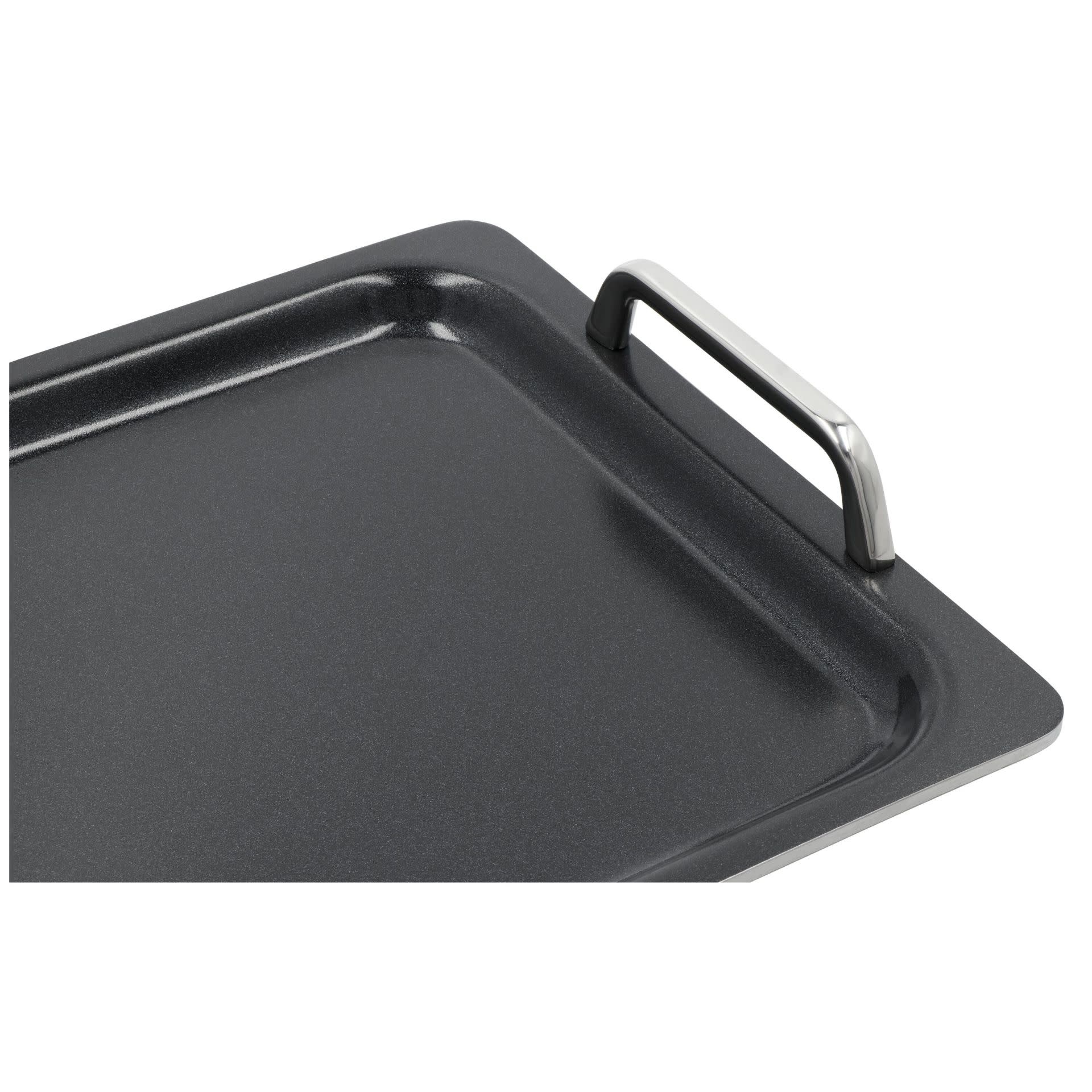 Zodra je eenmaal teppanyaki hebt geprobeerd, wil je het steeds opnieuw doen. Zeker als je de juiste bakplaat hebt die perfect bakt en eenvoudig schoon te maken is. En die heb je nu gevonden! Onze teppanyaki met Ceraforce coating is ideaal om een volledige oosterse of zuiderse maaltijd op één plaat te bereiden. Zo kun je als gastheer of -vrouw snel mee aan tafel schuiven. Laat je inspireren door de Japanse keuken: kipfilet en scampi’s met witte kool, prei, sojasaus, sherry en gember bijvoorbeeld. Of ga voor een Argentijnse mixed grill met biefstuk, spareribs, spek, aardappel in de schil en pittige chimichurri-saus. Zin in Spaanse gamba’s met knoflook of sardines à la plancha? Ook dat is zo klaar! Grote porties zijn geen probleem. Met de royale afmetingen van 39 x 27 cm bedekt de teppanyaki twee kookzones tegelijk, en het stevige 5-lagenmateriaal zorgt voor optimale warmtegeleiding. Dit robuuste model is geschikt voor elke warmtebron, inclusief inductie, én de oven (tot 230°C, niet onder de grill). Perfect om je gerecht warm te houden totdat iedereen voor een tweede keer opschept. De stevige, gelaste handgrepen zorgen ervoor dat je de goedgevulde teppanyaki moeiteloos kunt optillen. Na gebruik is schoonmaken eenvoudig: deglaceer de warme plaat direct en hij is zo weer klaar voor de volgende keer. Met deze teppanyaki breng je jarenlang een vleugje vakantiesfeer op tafel.