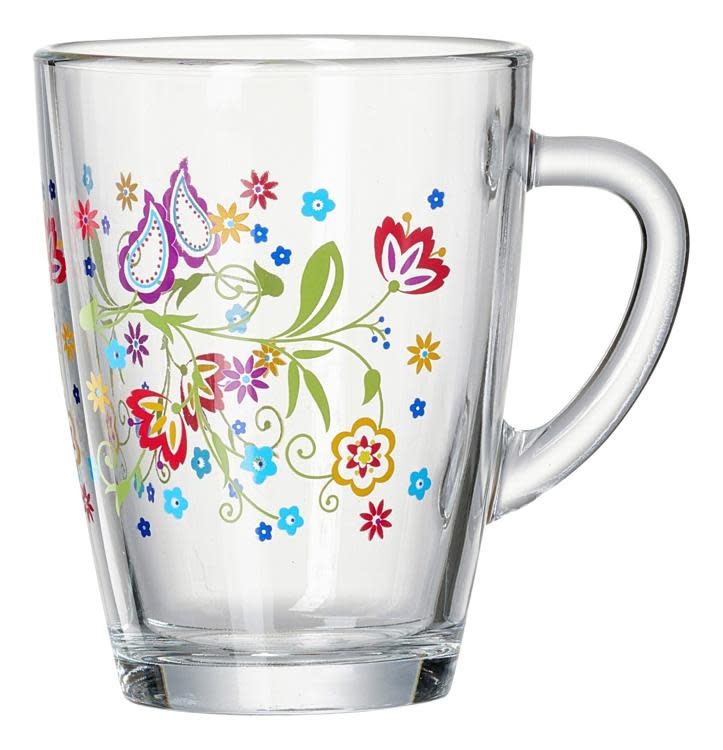 Het ontwerp is speels en eenvoudig, met een vrolijk bloemendecor in verschillende kleuren zoals rood, geel, groen, lichtblauw, donkerblauw en paars. Daardoor krijgt het glas een frisse en vrolijke uitstraling.