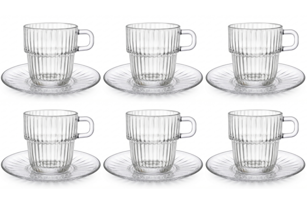 Serveer warme dranken stijlvol en praktisch met deze set van 6 theeglazen met bijpassende schoteltjes uit de Barshine-collectie. Ideaal voor thee, koffie of andere warme dranken, thuis of in cafés en restaurants.