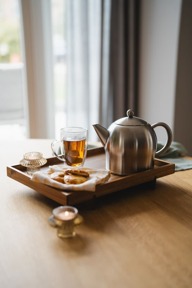 Zet deze dubbelwandige theepot nooit op een theelichtje of een andere warmtebron.