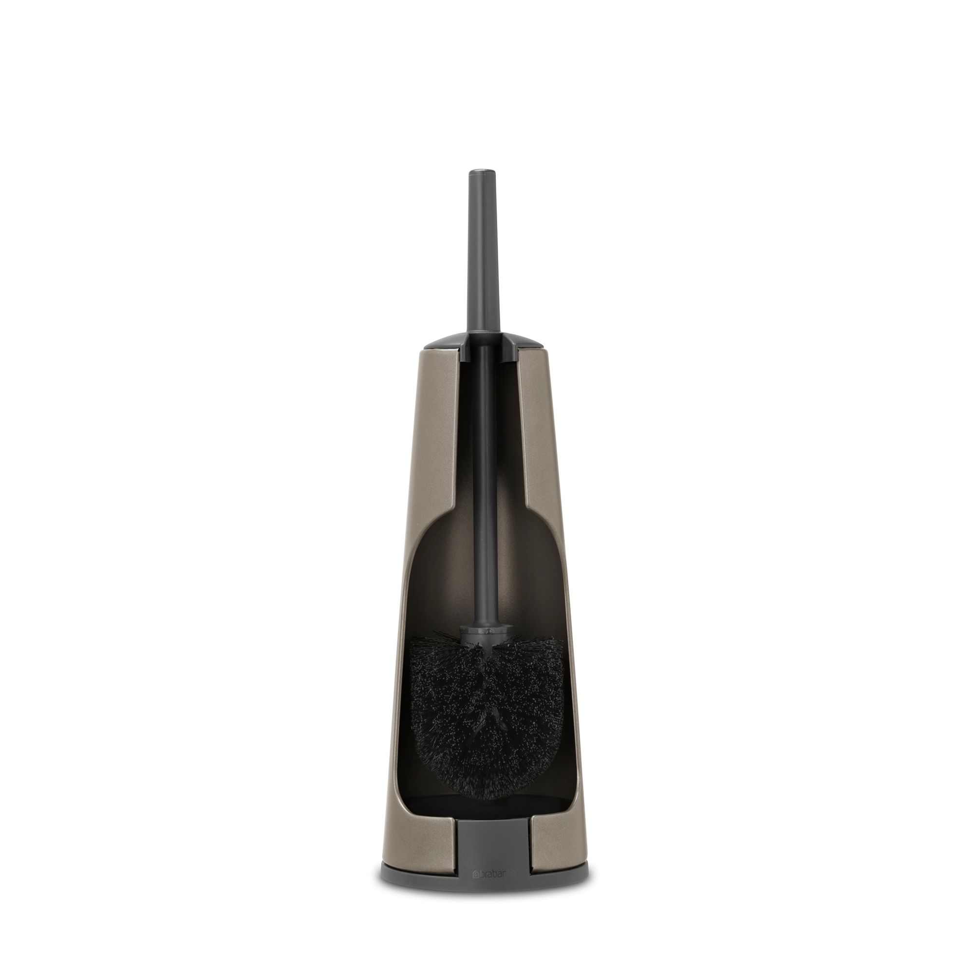 Maak het schoonmaken van het toilet eenvoudiger en stijlvoller met deze toiletborstel met houder in een moderne platinum uitvoering. Dankzij het discrete design blijft de borstel keurig uit het zicht, terwijl hij toch altijd binnen handbereik staat. De stevige houder met antislip onderkant zorgt ervoor dat alles netjes blijft staan, zonder krassen op de vloer.