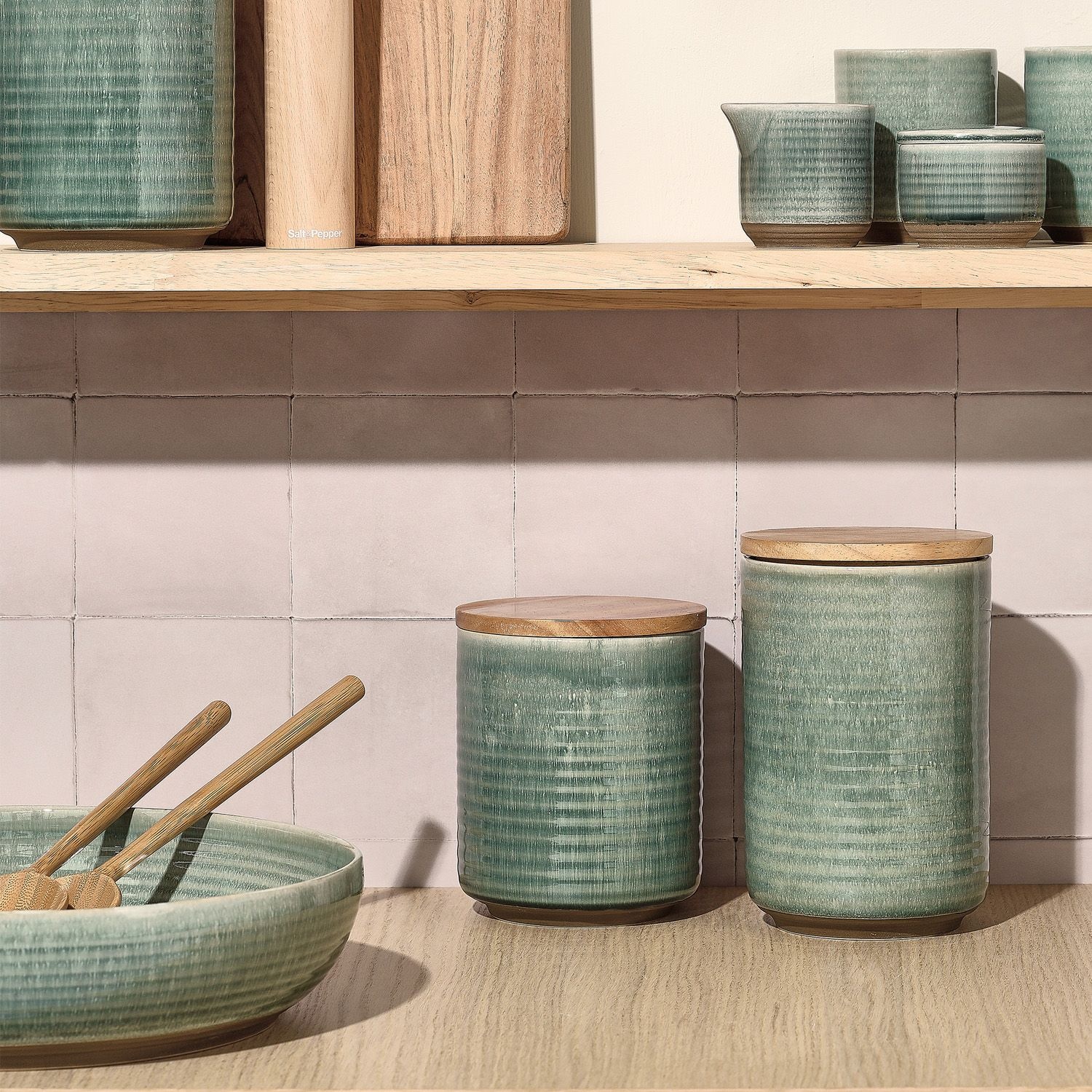 De bewaarpot is vervaardigd uit hoogwaardig stoneware en afgewerkt met een reactief glazuur, wat elk exemplaar uniek maakt. De warme groene kleur in combinatie met donkere accenten en het houten deksel zorgt voor een natuurlijke en gezellige uitstraling. Zo voegt u moeiteloos een stijlvol accent toe aan uw keukeninterieur.