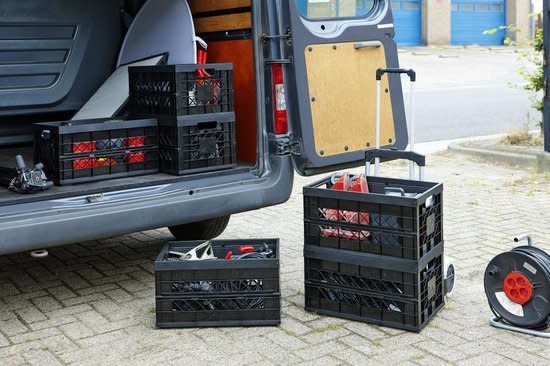 De open handgrepen aan de zijkanten maken tillen eenvoudig, en wanneer je de krat niet gebruikt, klap je hem plat op voor compacte opslag. Perfect voor onderweg, in de auto, in de garage of op de camping.