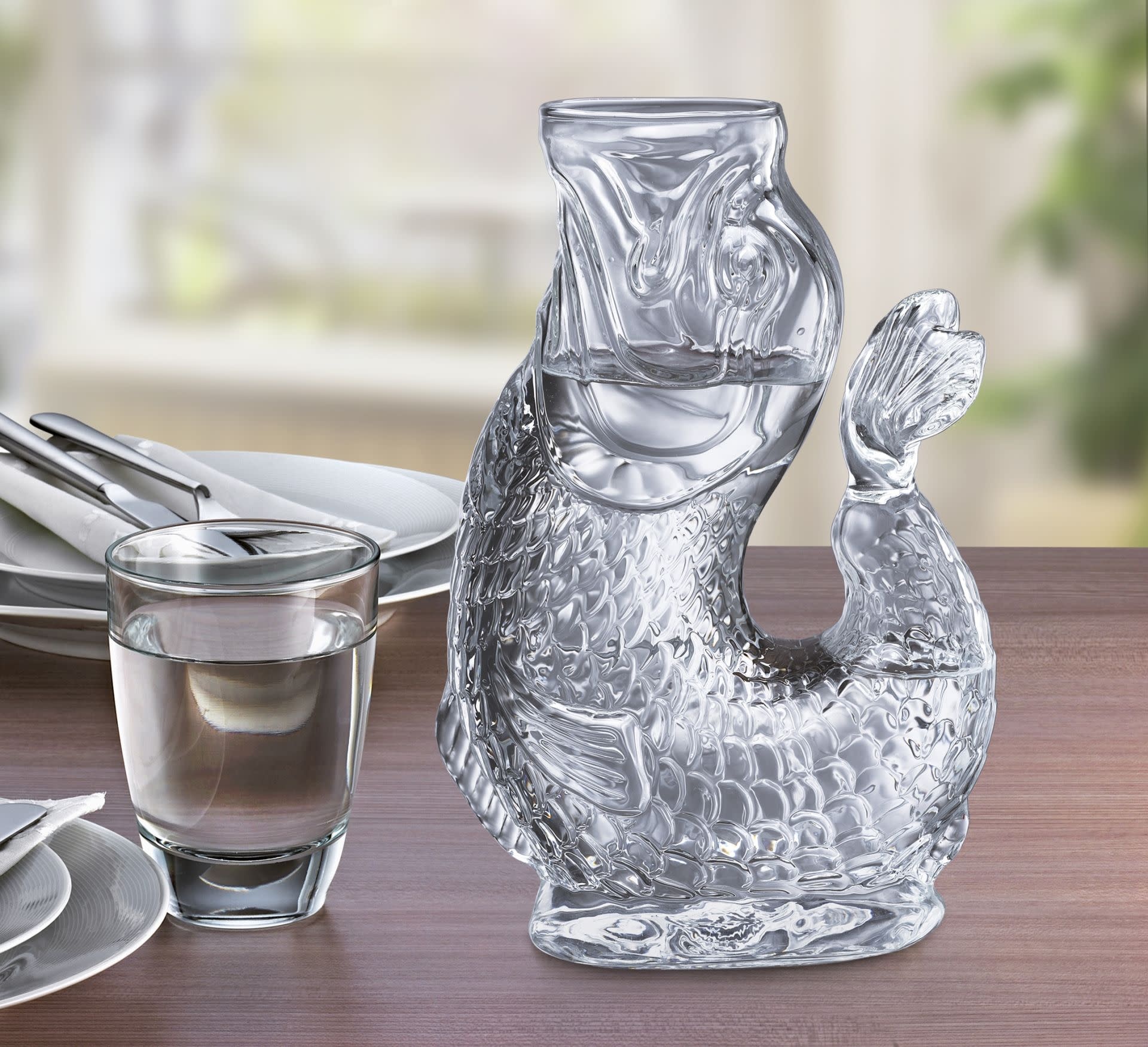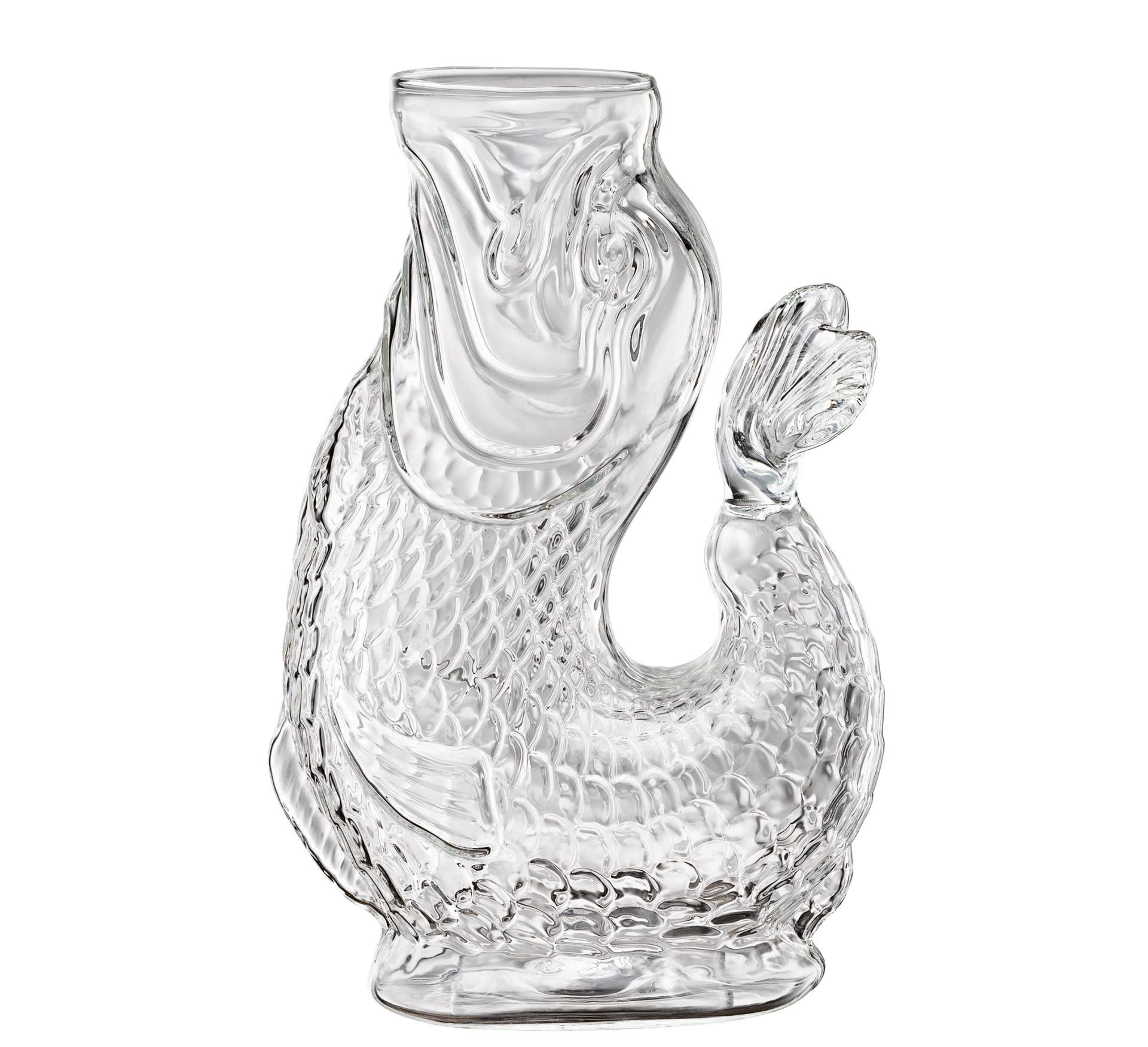 Bij het inschenken hoort u een zacht, vrolijk borrelend geluid. De brede opening maakt het vullen eenvoudig of u nu ijsblokjes, schijfjes citroen of ander fruit toevoegt voor een verfrissend tintje. Het visstaartvormige handvat ligt prettig in de hand en maakt het verplaatsen van de karaf naar tafel of terras moeiteloos.