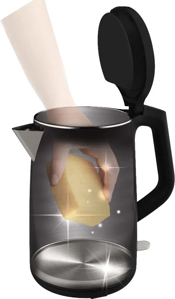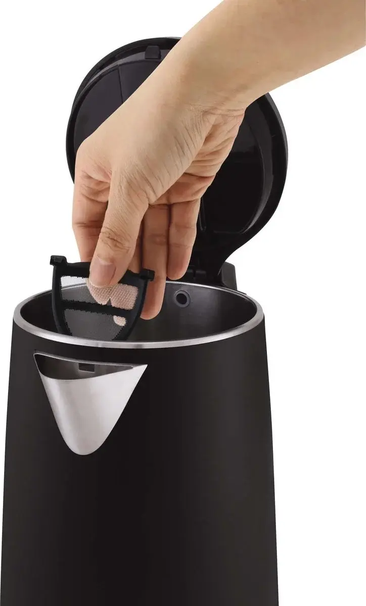 Het verborgen verwarmingselement helpt kalkaanslag te verminderen en maakt schoonmaken eenvoudiger. Daarnaast zorgen de automatische uitschakeling en droogkookbeveiliging voor extra veiligheid tijdens gebruik.