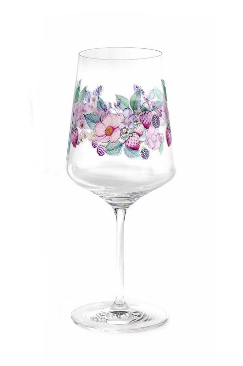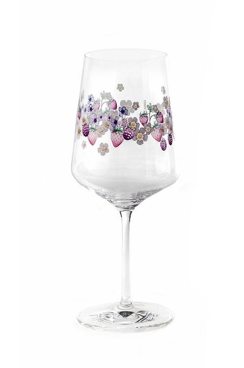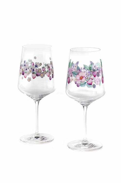 Wijnglas set Sommersonett bestaat uit twee stijlvolle aperitiefglazen met een inhoud van 544 ml. De glazen zijn geschikt voor allerlei drankjes zoals spritz, cocktails, wijn, punch of sap. Het ontwerp heeft een speels motief van aardbeien en bessen in warme kleuren, wat het geheel een zomerse en frisse uitstraling geeft.