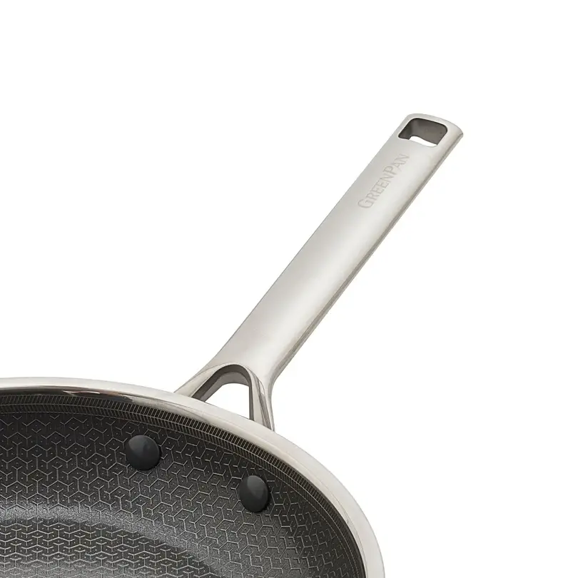 GreenPan APEX is de ultieme heruitvinding van hybride kookgerei. Het combineert geëtst roestvrij staal met een PFAS-vrije antiaanbaklaag en een boostlaag voor topresultaten. Het biedt geweldige schroeiresultaten, moeiteloze loslating en is vijf keer beter bestand tegen metalen keukengerei. Geschikt voor alle kookplaten en ovenbestendig tot 220°C. Bovendien is het makkelijk schoon te maken. Ervaar de evolutie van koken met GreenPan.